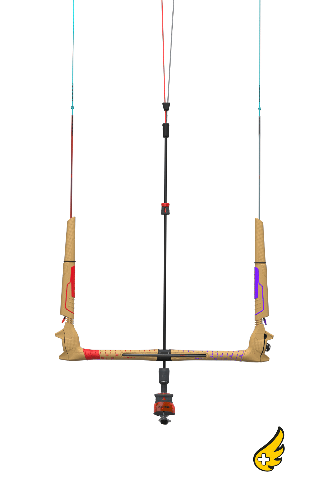 Com a opção de baixa V, a barra se adapta à maioria dos kites do mercado, ampliando sua versatilidade. A segurança também é reforçada pelo Iron Heart VI Click-In e pelo sistema automático de destorção, que simplifica giros e loops. Outros recursos incluem floater removível para inspeção fácil das linhas, pigtails minimalistas para reduzir volume, anel metálico V-Distributor que evita emaranhados e montagem simplificada, além da possibilidade de uso em setup de 4 ou 5 linhas (com kit disponível).