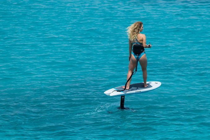 O Foil Assist Remote é um controle à prova d’água, em formato de smartwatch, acompanhado de um anel para o dedo, permitindo manter as mãos livres para remar ou se apoiar na prancha.