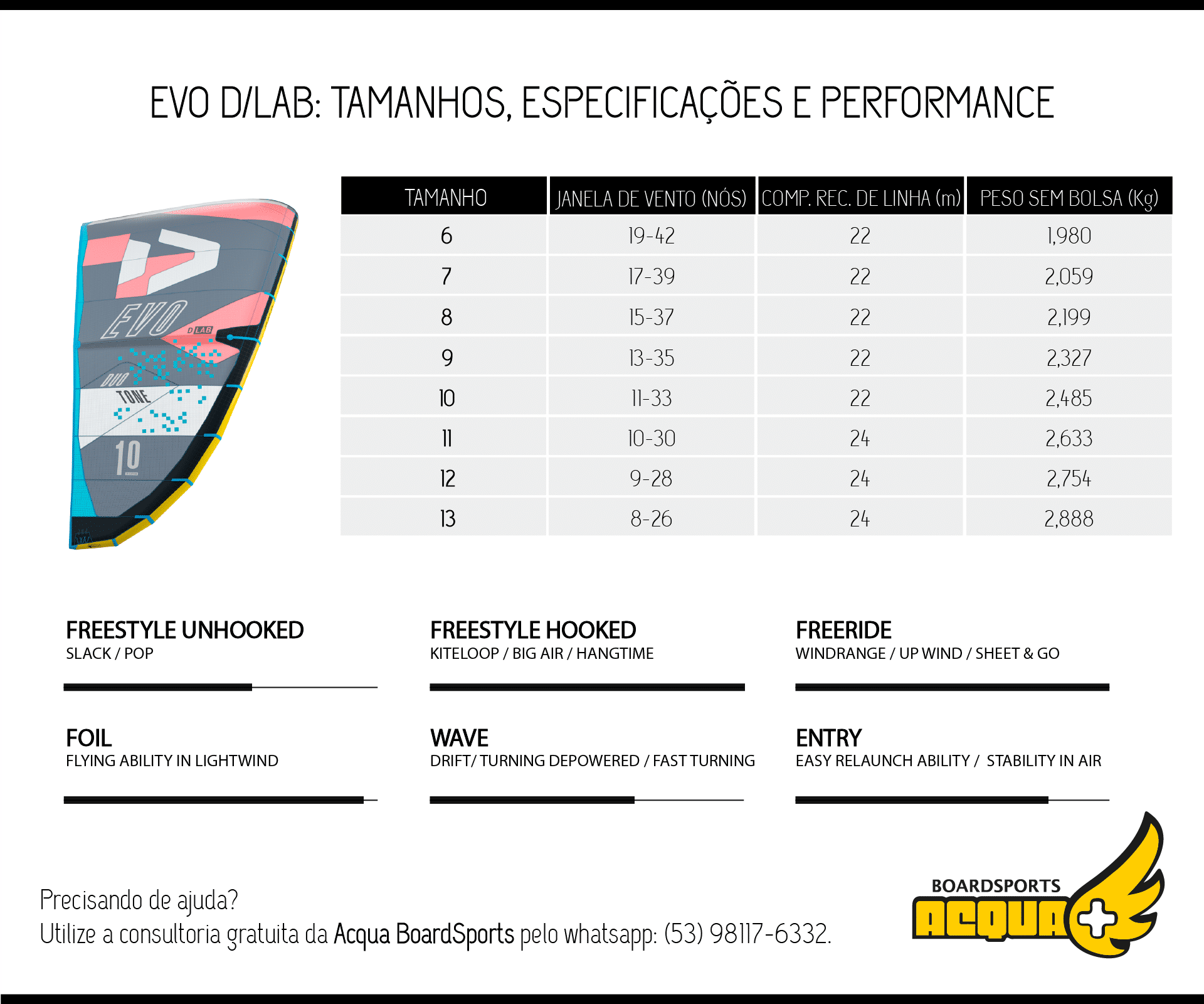 Se você ainda tem dúvidas se o EVO D/LAB é o kite certo pra você, utilize nossa consultoria gratuita pelo whatsapp: (53) 98117-6332.