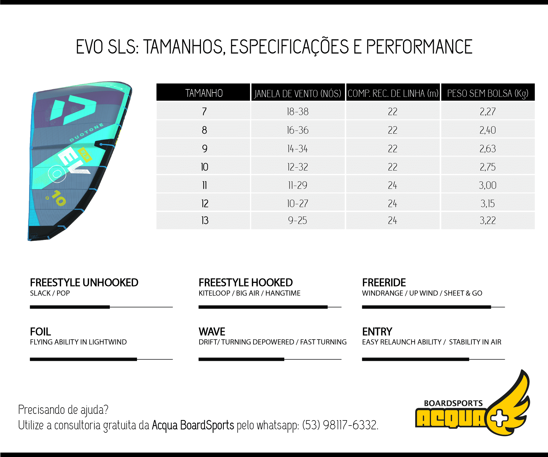 Se você ainda tem dúvidas se o EVO SLS é o kite certo pra você, utilize nossa consultoria gratuita pelo whatsapp: (53) 98117-6332.
