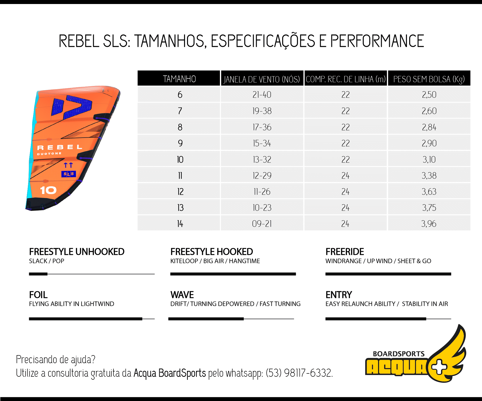 Se você ainda tem dúvidas se o Rebel SLS é o kite certo pra você, utilize nossa consultoria gratuita pelo whatsapp: (53) 98117-6332.