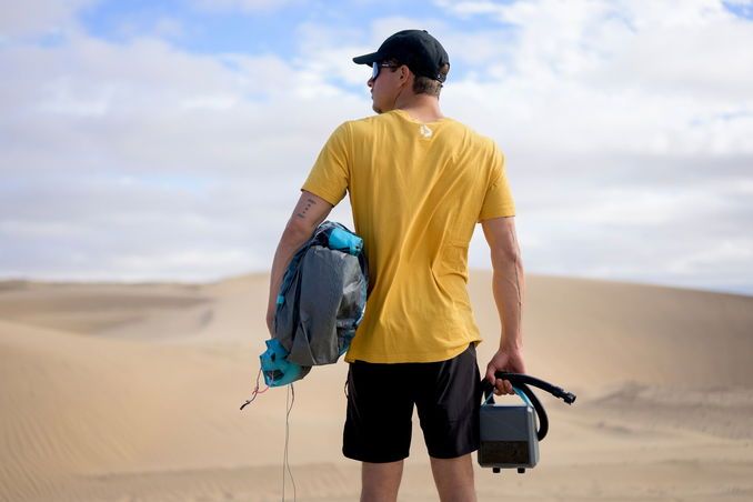 A eficiência de sua bateria é surpreendente: infla até 10 kites (9m) a 10 PSI, 8 wings (5m) ou 3 a 5 SUPs com uma única carga. E quando for preciso recarregar, o tempo de carregamento é de apenas 2 a 3 horas, garantindo mínimo intervalo entre sessões.