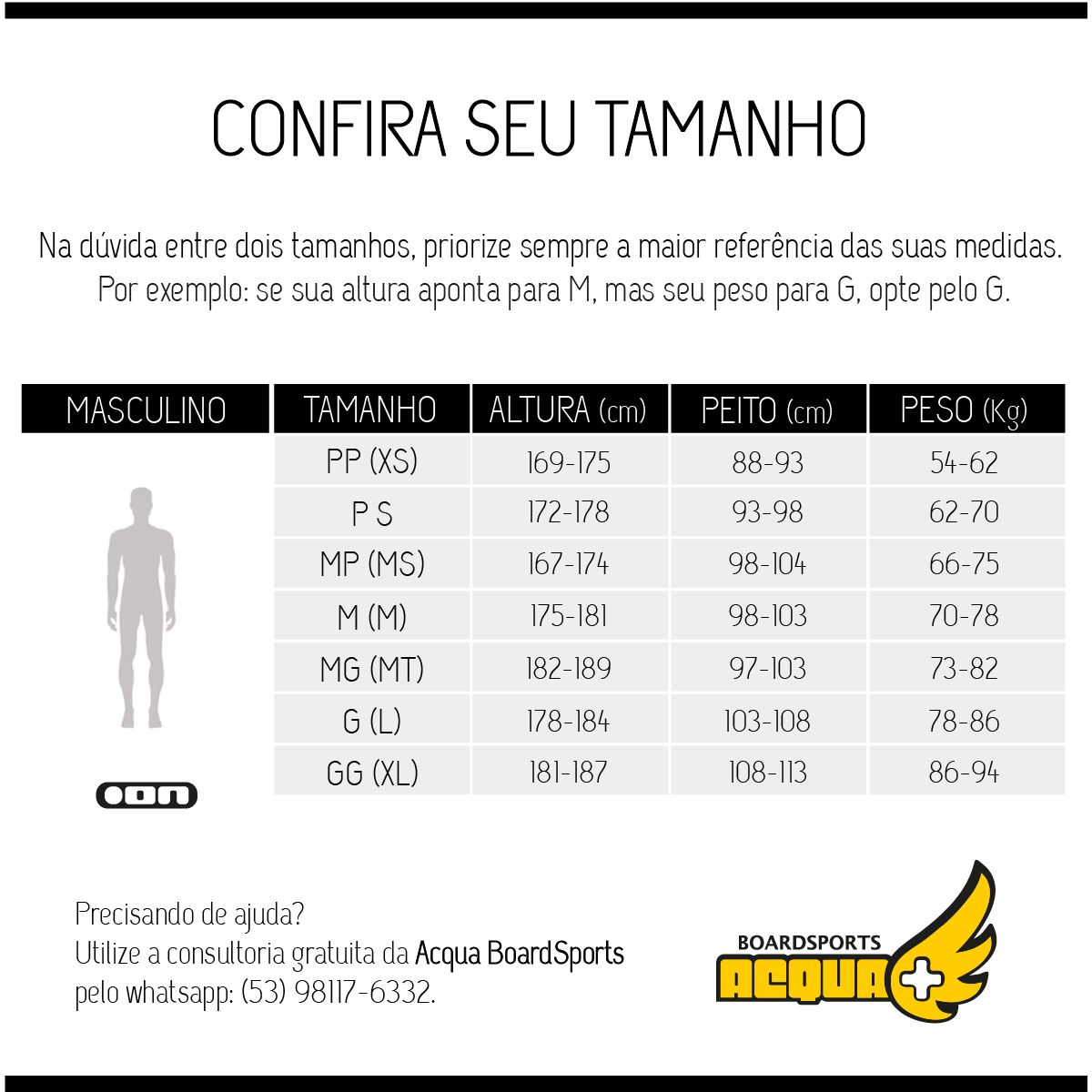 As roupas de neoprene são feitas para vestir bem justas ao corpo, funcionando como uma segunda pele. É essencial que fiquem coladas, sem sobras de material, para garantir seu desempenho. No início, especialmente se você não estiver acostumado, elas podem parecer apertadas — e isso é normal. O neoprene é elástico e se molda ao corpo com o uso, mantendo sua função térmica. Seguindo a tabela de medidas disponível nas fotos do produto, é muito pouco provável que haja erro na escolha do tamanho.