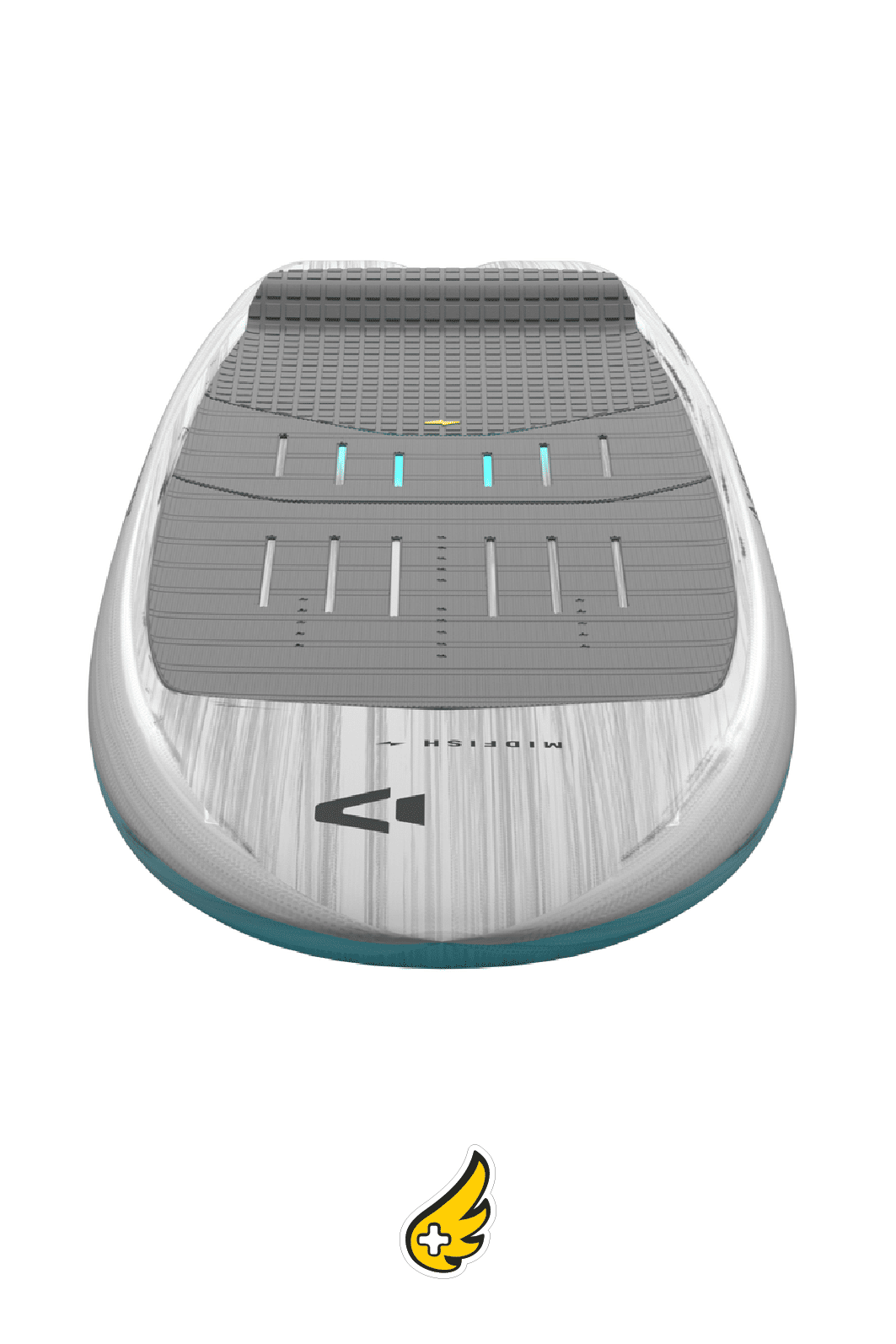 Construída em full carbon, com reforço em PVC na área de apoio dos pés, a Midfish combina rigidez, resistência e leveza. Essa estrutura garante máxima transferência de energia para o foil, proporcionando controle absoluto e respostas rápidas em cada manobra.