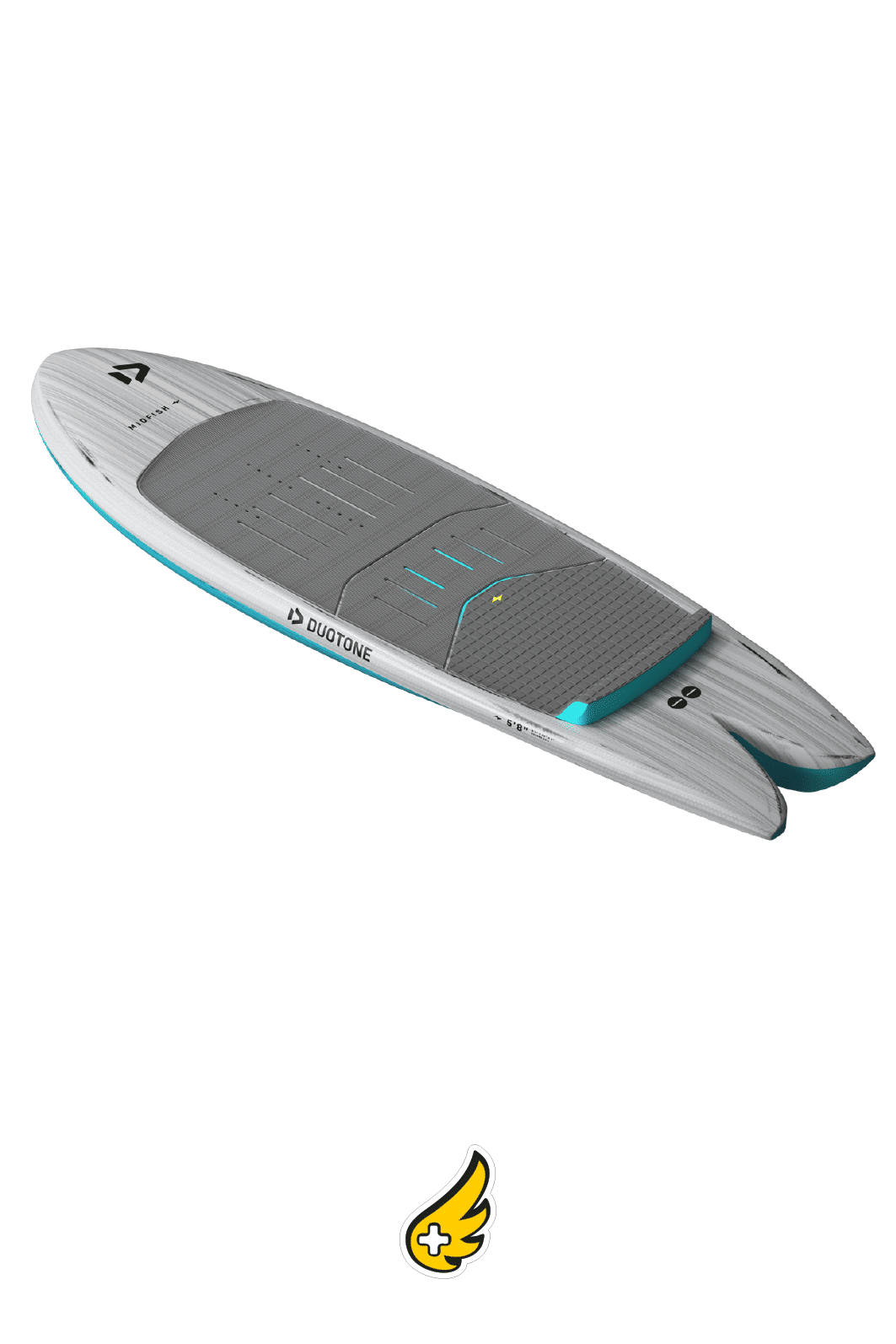 Seu outline estreito com shape mid-length foi desenvolvido para permitir curvas fortes e controladas, mantendo total estabilidade. O design mais fino cria uma conexão direta com o foil, resultando em uma sensação extremamente responsiva e precisa. O rocker baixo aumenta a área de contato com a água, oferecendo mais estabilidade durante a remada, a decolagem e os touchdowns.