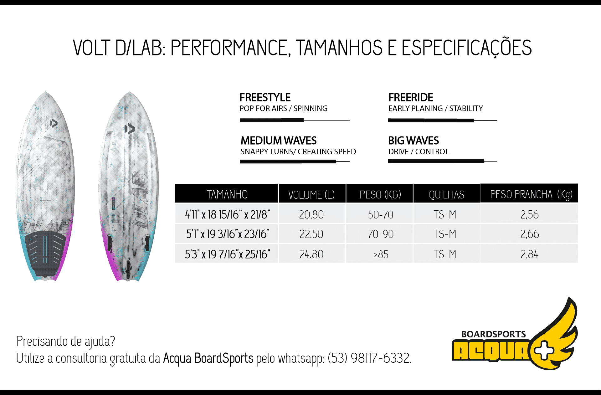 ✅ Se você ainda tem dúvidas se a Volt D/LAB 2026 é a prancha certa para você, utilize nossa consultoria gratuita pelo WhatsApp: (53) 98117-6332