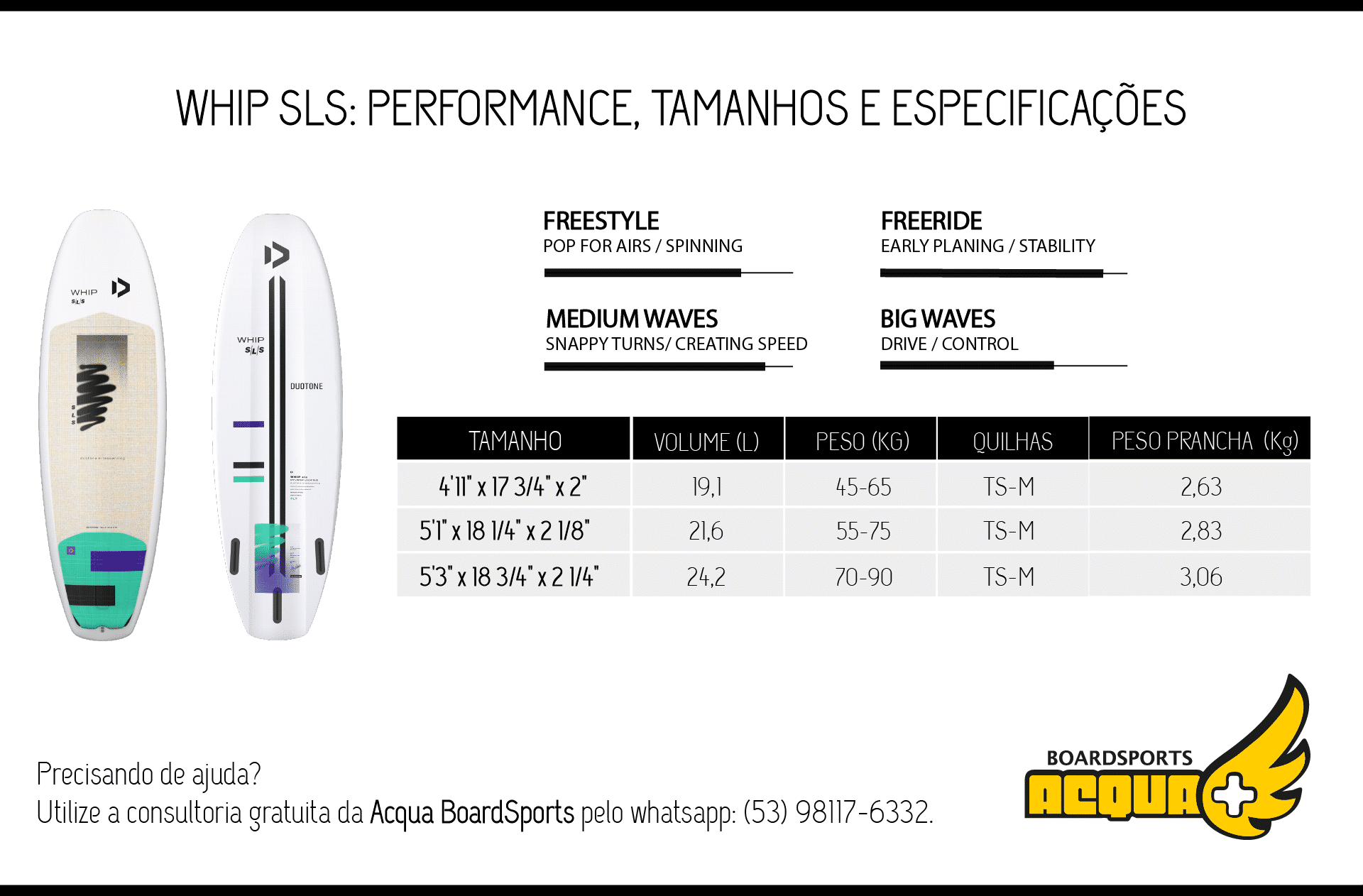 Se você ainda tem dúvidas se a Whip SLS é a prancha certa pra você, utilize nossa consultoria gratuita pelo whatsapp: (53) 98117-6332.