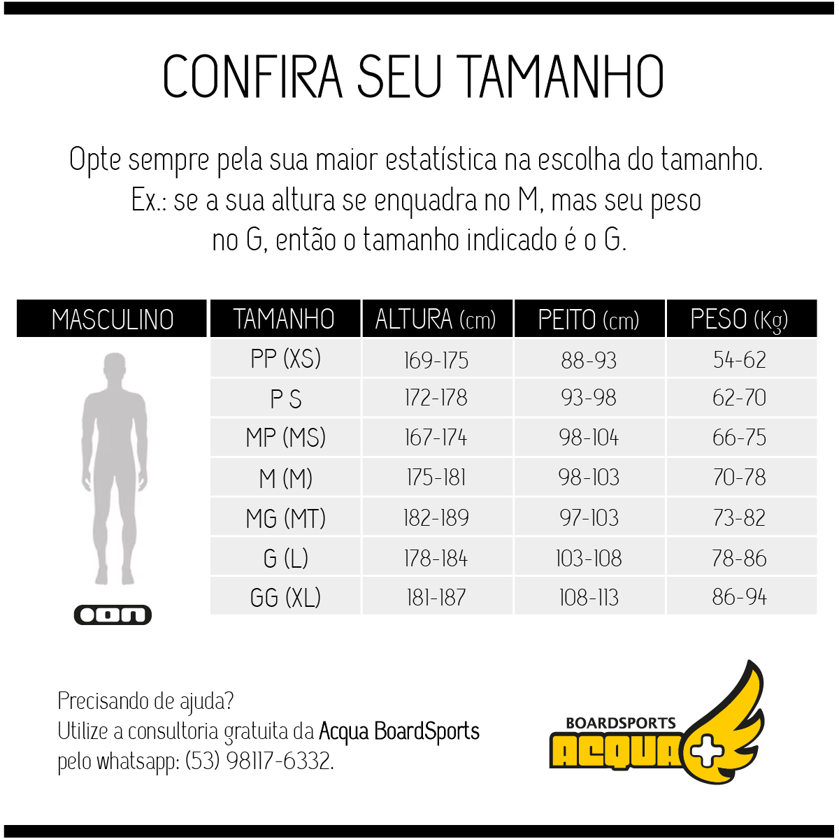 As roupas de neoprene são feitas para vestir bem justas ao corpo, funcionando como uma segunda pele. É essencial que fiquem coladas, sem sobras de material, para garantir seu desempenho. No início, especialmente se você não estiver acostumado, elas podem parecer apertadas — e isso é normal. O neoprene é elástico e se molda ao corpo com o uso, mantendo sua função térmica. Seguindo a tabela de medidas disponível nas fotos do produto, é muito pouco provável que haja erro na escolha do tamanho.