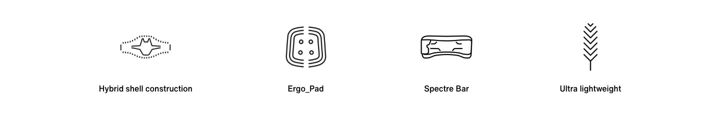 O trapézio é leve, graças à construção parcial em Curv, espuma HD não absorvente de água e a elegante barra Spectre (gancho de kite incluído). As Curv_Flaps da barra Spectre criam uma distribuição de força otimizada e contínua por todo o trapézio.