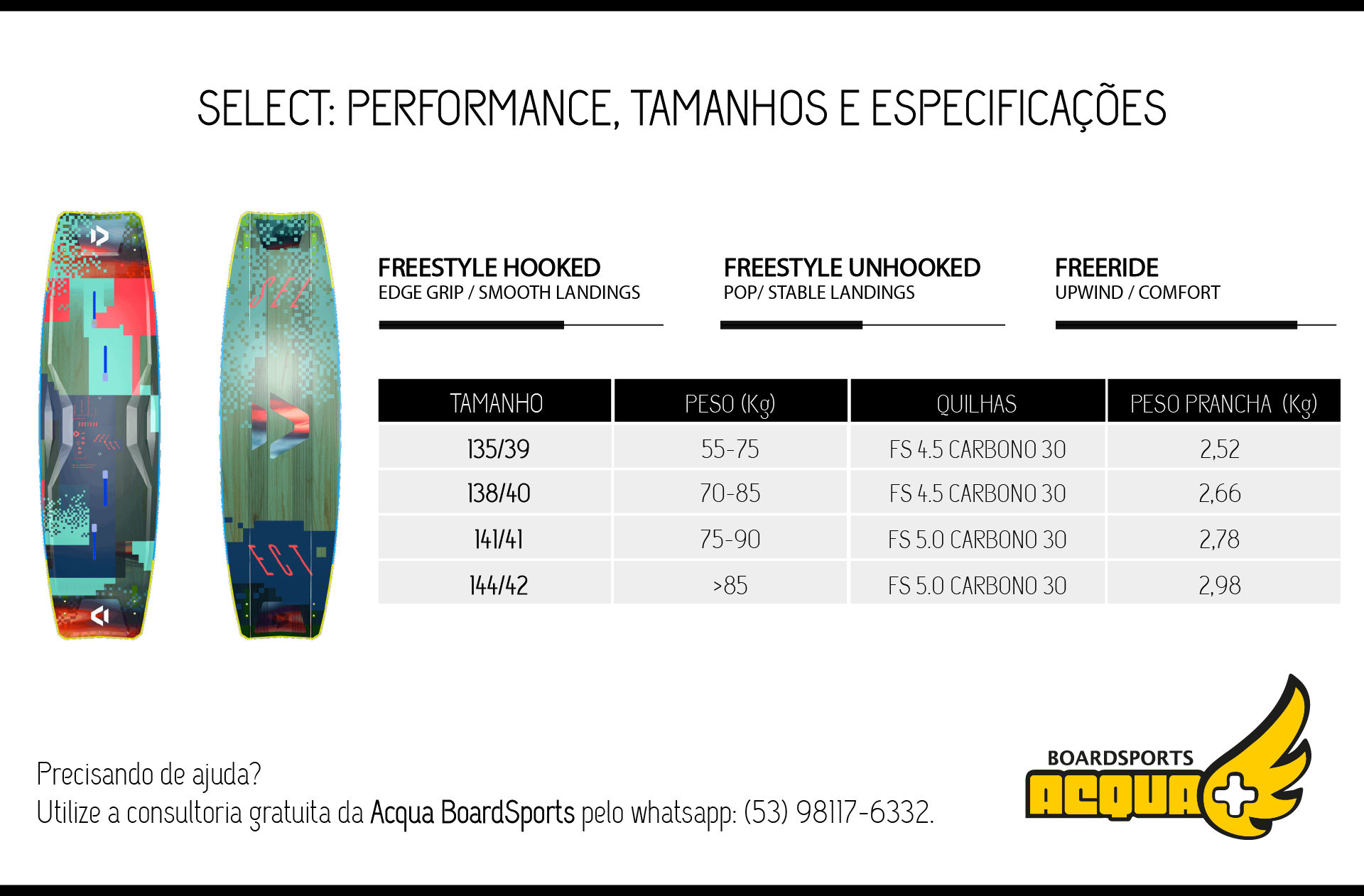 Para 2023, a melhor prancha de freeride do mercado ganhou uma reformulação com um novo contorno que melhora o conforto na água, o desempenho em ventos fracos e as aterragens. Se você gosta de freeride e de grandes saltos, a SELECT é a prancha que você precisa!