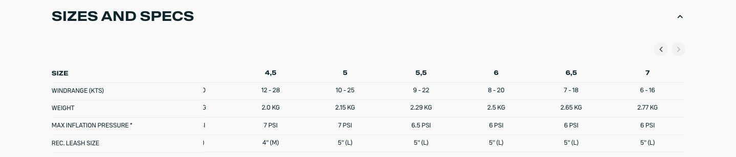 Ângulos de diedro nas asas são críticos, e a equipe passou muito tempo trabalhando para encontrar o melhor ângulo para oferecer a máxima estabilidade ao velejar usando a alça frontal. A tensão do tecido foi ajustada para oferecer o máximo de potência com o mínimo absoluto de tremulação.